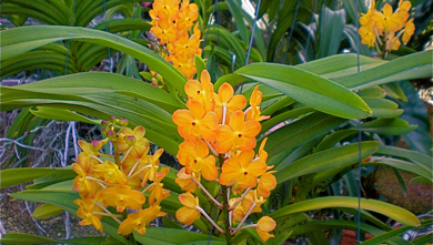 from left to right: vanda, vanda, dendrobrium, cattlya
